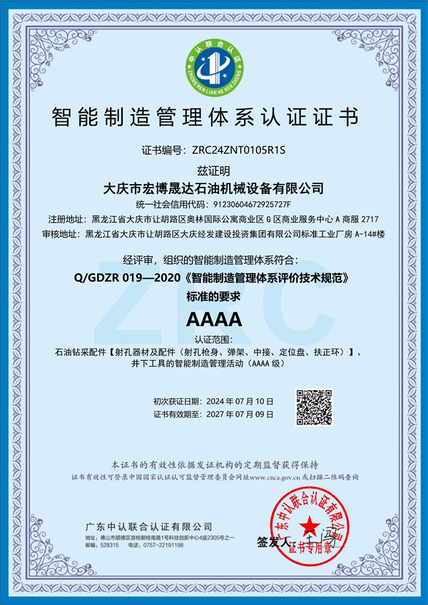 智能制造管理體系認(rèn)證證書